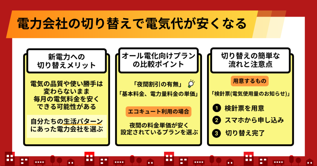 • 我慢せずに安くするなら、電力会社の乗り換えが最短ルート