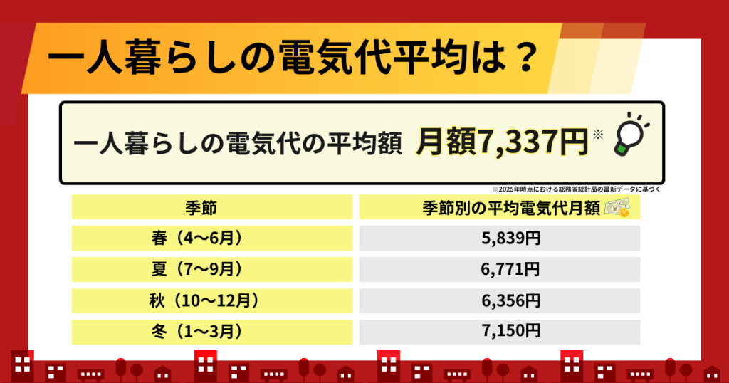 - 一人暮らしの電気代平均は月額7,337円