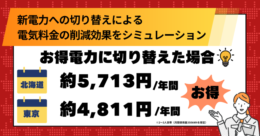お得電力:大手電力会社と同等プランで基本料金から安くなる