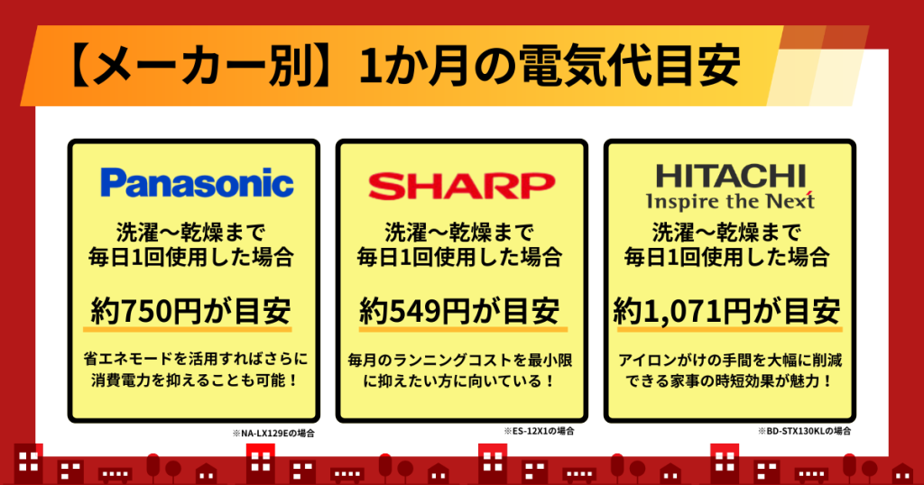 【メーカー別】人気ドラム式洗濯機の1か月の電気代目安