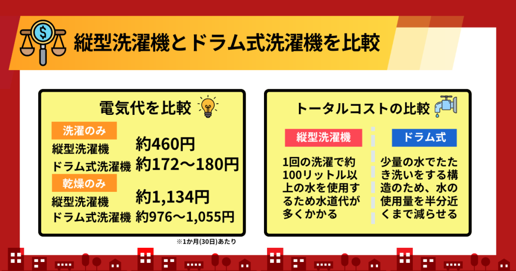 縦型洗濯機とドラム式洗濯機のランニングコストを比較