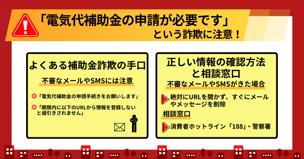 • 電気代補助金の申請は原則不要!電力会社が自動で値引きします。