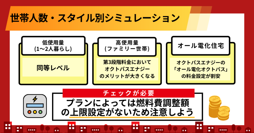 基本的な料金設定はオクトパスエナジーの方が安いといえますが、燃料費調整額に上限がない点に注意が必要です。