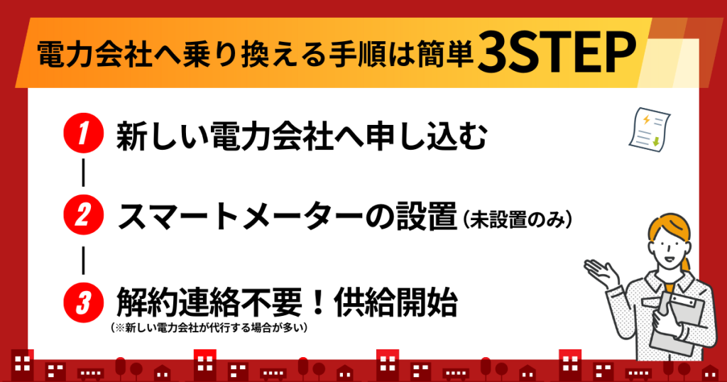 現在の電力会社への解約連絡も、多くの場合は不要で、手間をかけずに乗り換えられます。