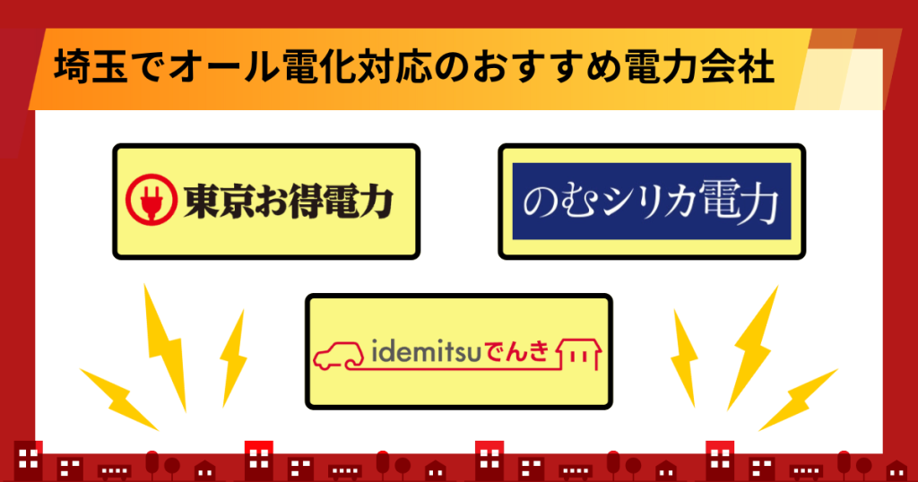 ここからは、埼玉県(東京電力エリア)で契約できるおすすめの電力会社を紹介します。