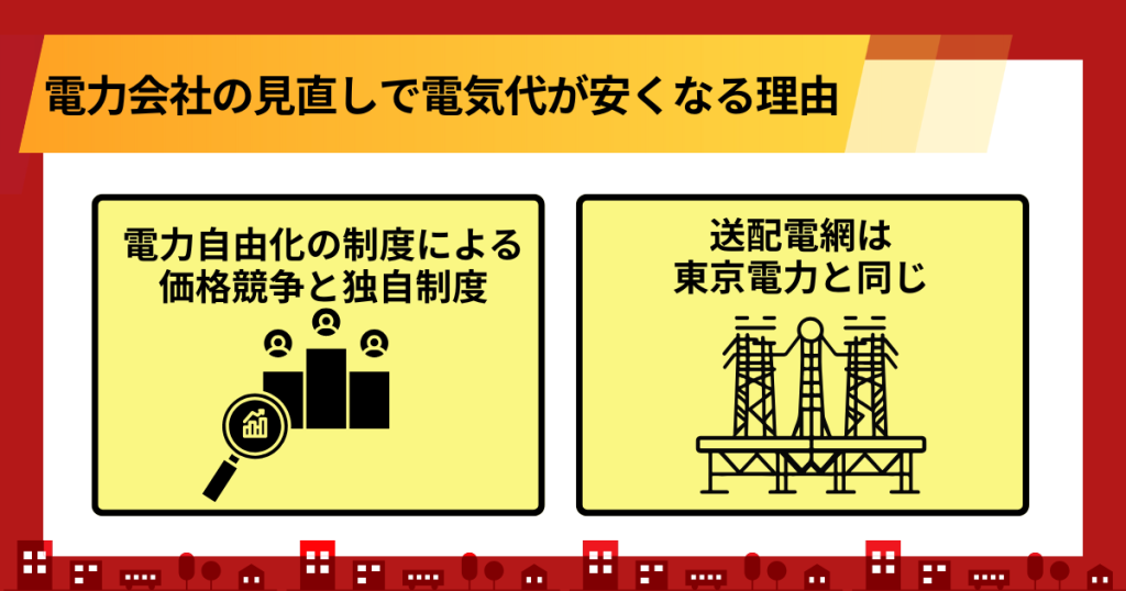 電力会社を切り替えるだけで電気代が下がる仕組みには、明確な理由があります。