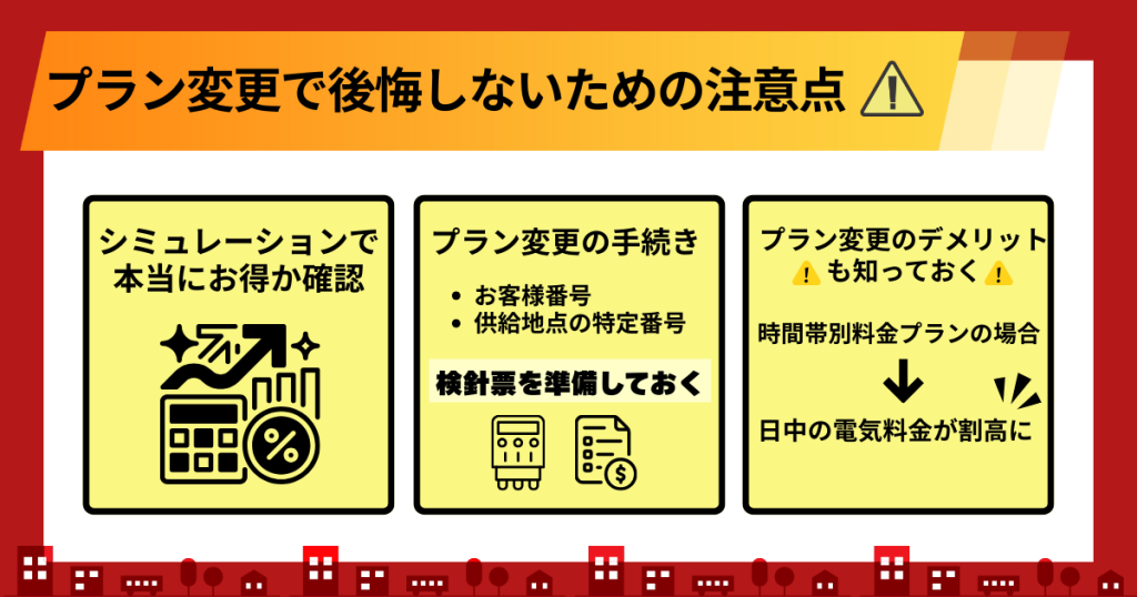 たとえば、夜間料金が安くなるプランに変更した場合、生活スタイルによっては日中の電気代が割高になり、結果的に総額が高くなる可能性があります。