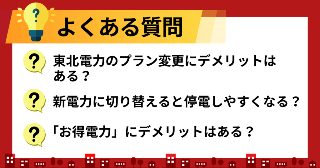 最後に、東北電力の料金プランに関して多くの方が抱く疑問について、Q&A形式で解説します。