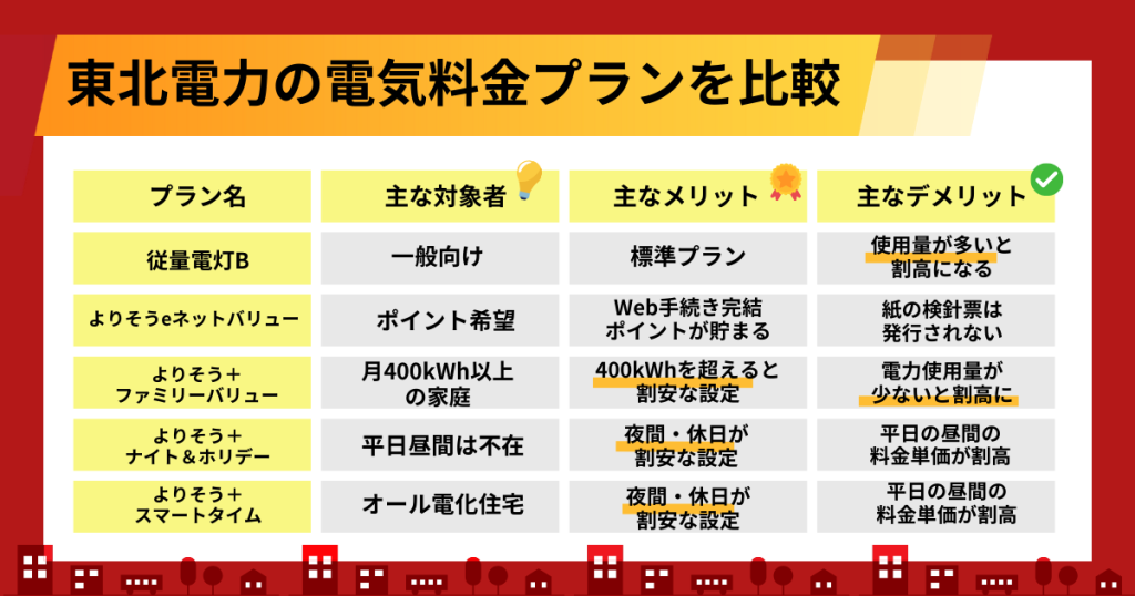 東北電力の主要な電気料金プランを比較
